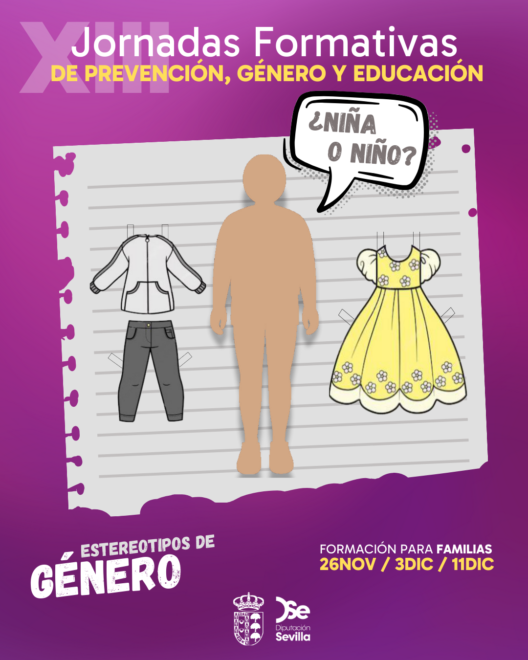 Bajo el subtítulo ‘Estereotipos de Género’, se celebrarán tres ponencias dirigidas a familias y personal técnico en ámbito educativo.El 26 de noviembre tendremos en horario de 18:00 horas a 20:00 horas la ponencia “Juegos, Juguetes y espacio educativos libres de estereotipos de género. ¿Qué actitudes, emociones y valores educamos?’ impartida por Argelio Gallego, psicólogo experto en gestión emocional, diversidad y género