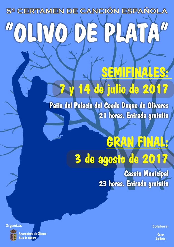La 1ª Semifinal del 5ª Certamen de Canción Española "Olivo de Plata" se celebrará el viernes 7 de julio, a las 21:00 en el patio del Palacio del Conde Duque, la entrada será gratuita.