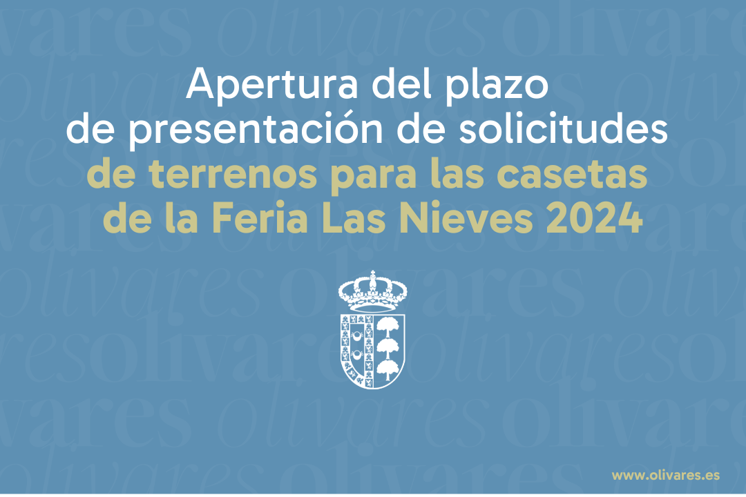 El Ayuntamiento de Olivares hace público el plazo de presentación de solicitudes de terrenos para la instalación de casetas en el Recinto Ferial con motivo de la celebración de la Feria Las Nieves, que este año 2024 se realizará del 1 al 5 de agosto.