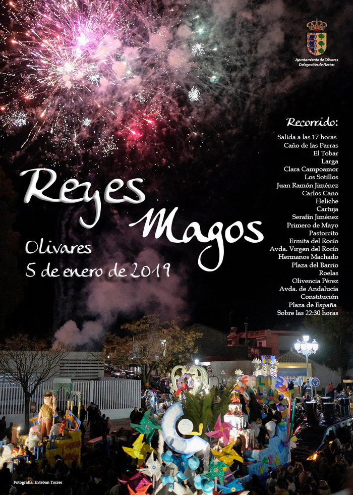 Salida a las 17 horas de la Nave Municipal (Caño Las Parras) , C/ Tobar, C/ Clara Campoamor, C/ Los Sotillos, C/ Juan Ramon Jiménez, C/ Carlos Cano, C/ Heliche, C/ Cartuja, C/ Serafín Jiménez, C/ Primero de Mayo, C/ Pastorcito, Avda. del Rocío, C/ Hermanos Machado, Plaza del Barrio, C/ Roelas, C/ Olivencia Pérez, Avda. de Andalucía, C/ Constitución, Plaza de España. Llegada 22:30h aprox.