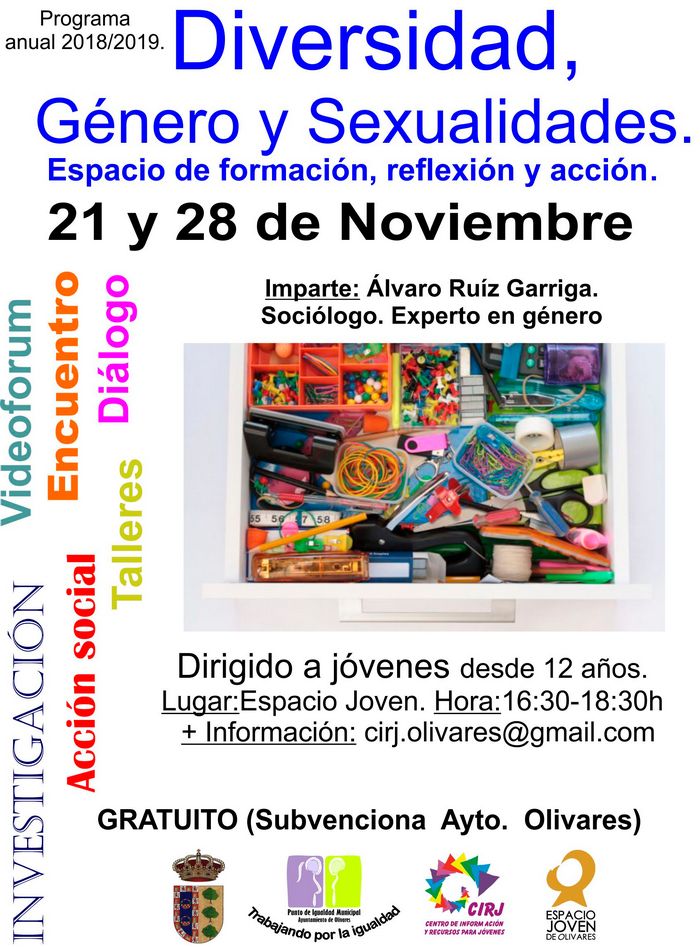 DIVERSIDAD, GÉNERO Y SEXUALIDADES. PROGRAMA ANUAL 2018/2019. COMIENZO EL 21 DE NOVIEMBRE. ESPACIO PARA LA FORMACIÓN, REFLEXIÓN Y ACCIÓN