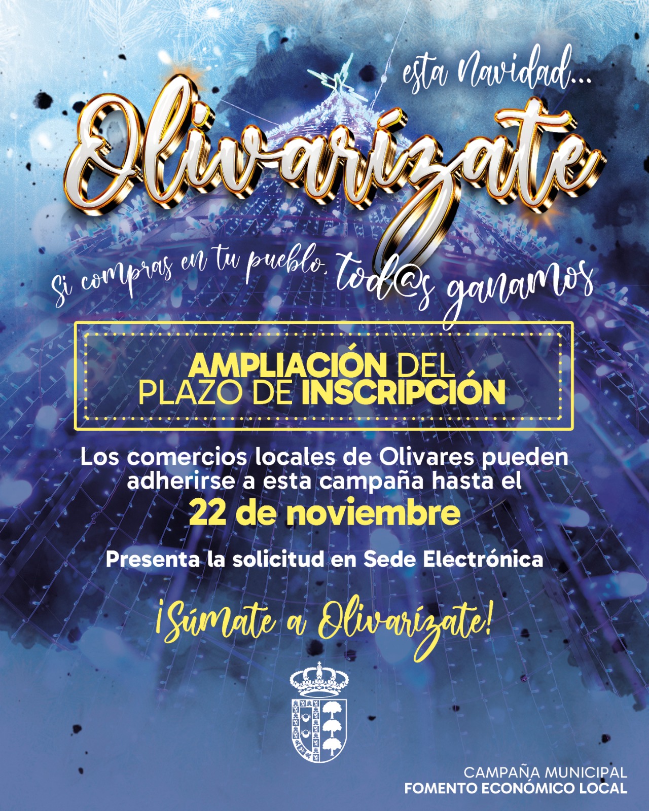 La II campaña de Navidad y fomento de la economía local ’Olivarízate’ tendrá como fecha de inicio el día 18 de noviembre de 2024 y como fecha fin el día 18 de diciembre de 2024, ambos inclusive.