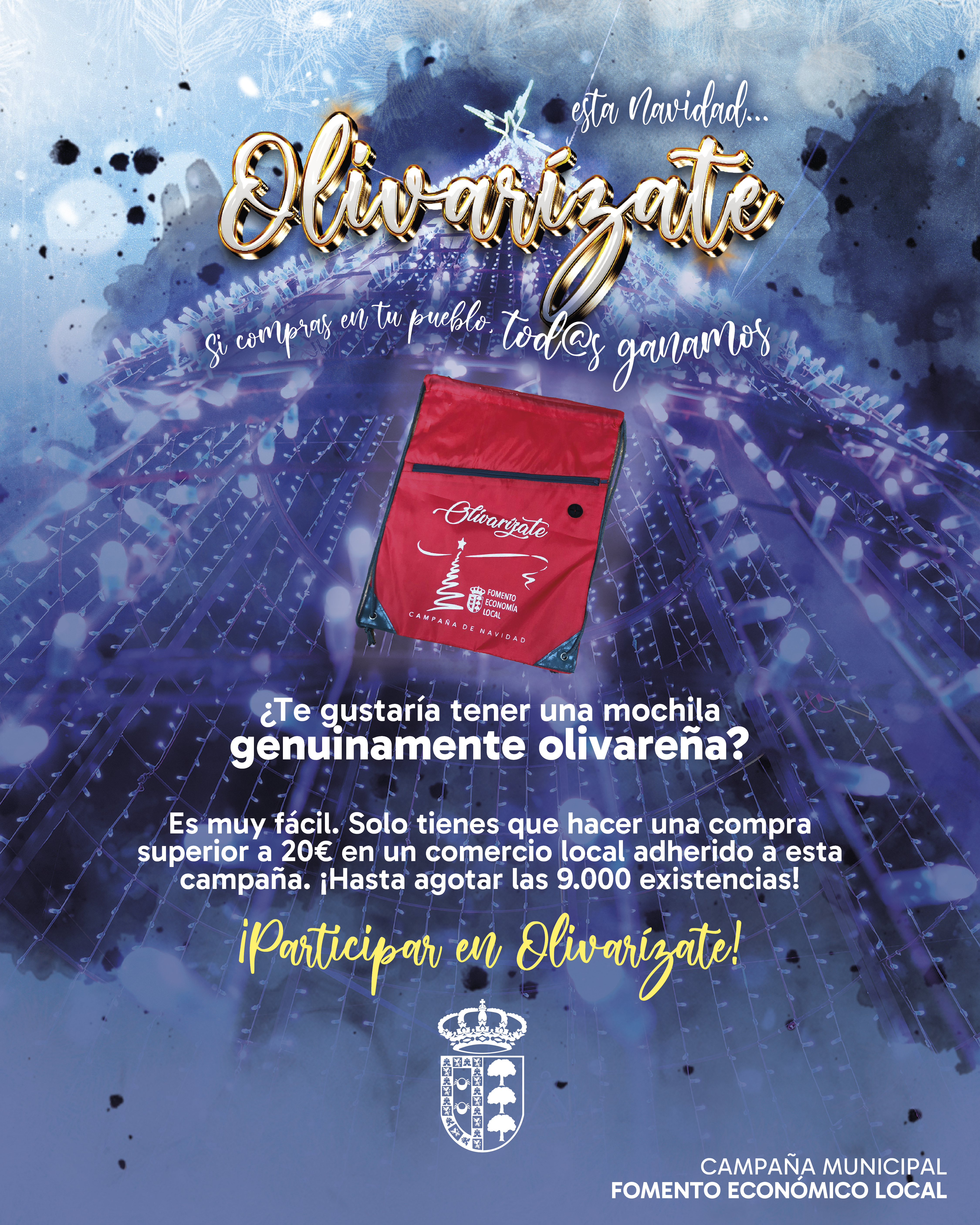El Ayuntamiento de Olivares vuelve a poner en marcha para las próximas fiestas navideñas la campaña municipal ‘Olivarízate’, que tiene como objetivo fomentar el consumo y la economía local entre los vecinos y el tejido comercial de nuestro municipio.