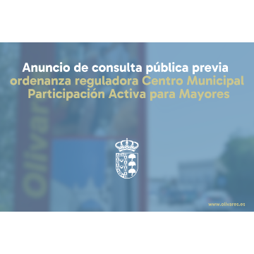 El Ayuntamiento de Olivares inicia el procedimiento para someter a consulta pública previa la futura Ordenanza Reguladora del Centro Municipal de Participación Activa para Mayores, tal y como se aprobó en la Junta de Gobierno del pasado 5 de diciembre de 2025.