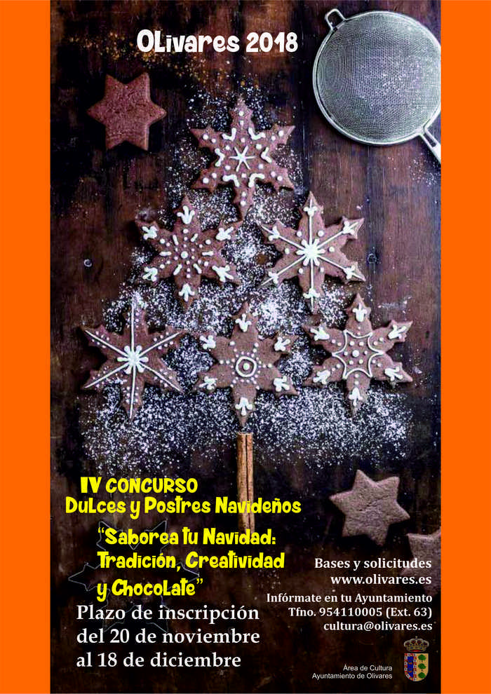 La Delegación de Cultura del Ayuntamiento de Olivares, con motivo de la Navidad, convoca la Cuarta Edición del Concurso de Dulces y Postres navideños "Saborea tu Navidad: Tradición, Creatividad y Chocolate".