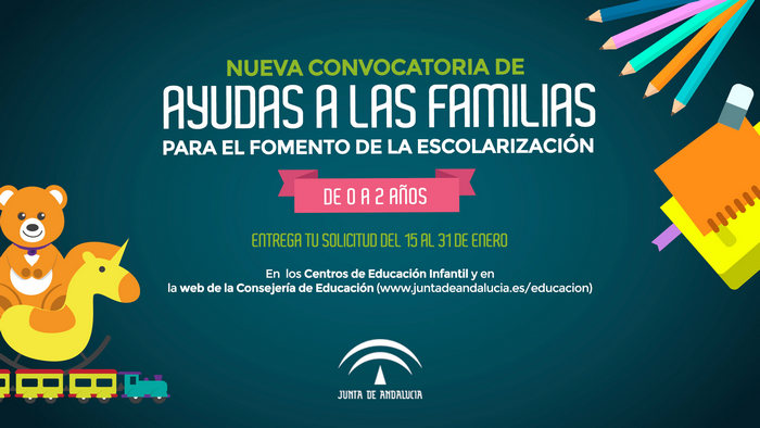 La Consejería de Educación de la Junta de Andalucía ha abierto una segunda convocatoria extraordinaria de ayudas a las familias para el fomento de la escolarización, dirigida a los niños y niñas de 0 a 2 años.