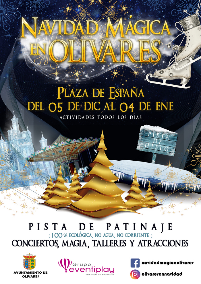 Pista de patinaje, conciertos, magia, talleres y atraciones en la Plaza de España de Olivares