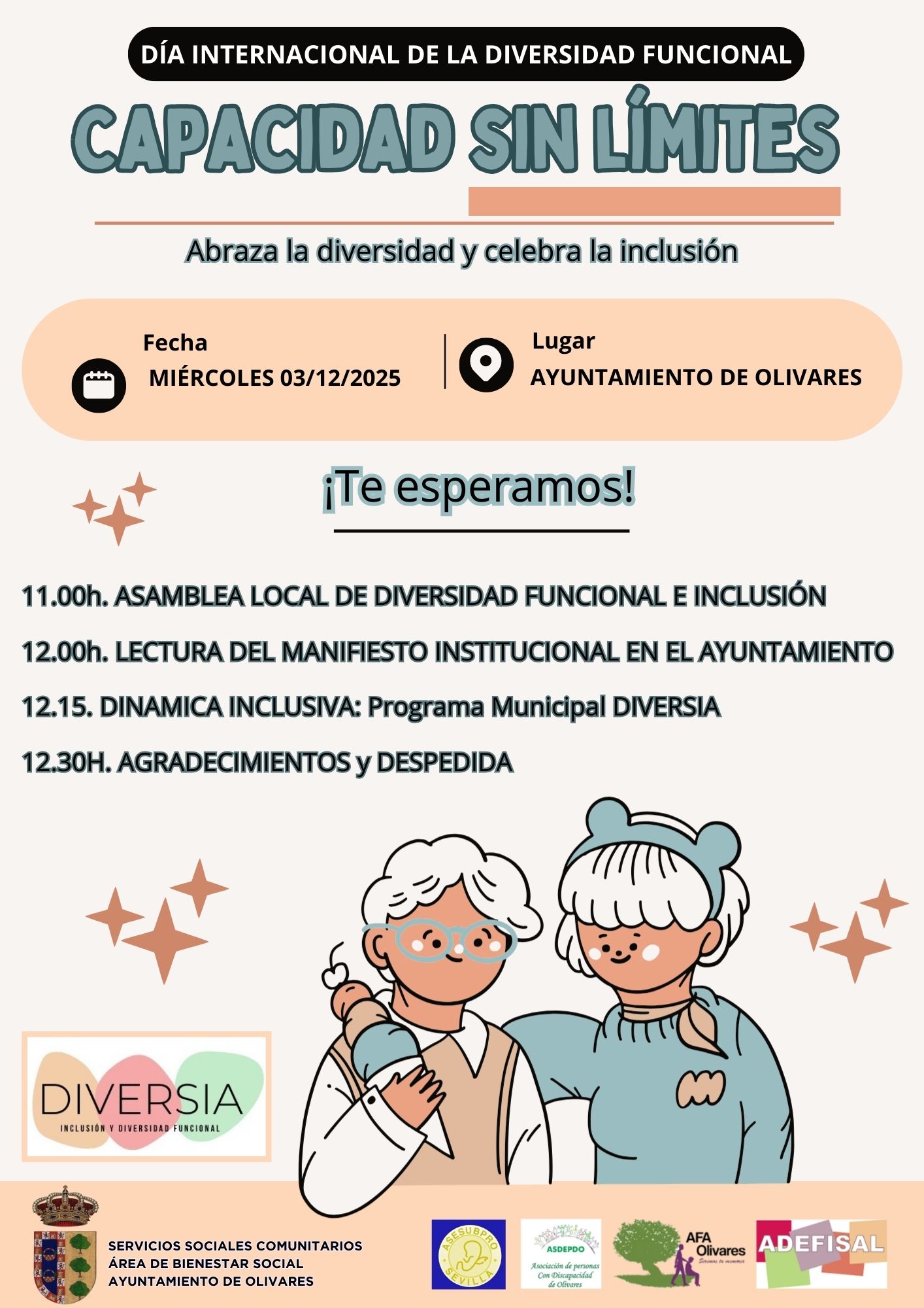 jornada ‘Capacidad sin límites. Abraza la diversidad y celebra la inclusión’ se celebrará en el Ayuntamiento de Olivares desde las 11:00 horas.