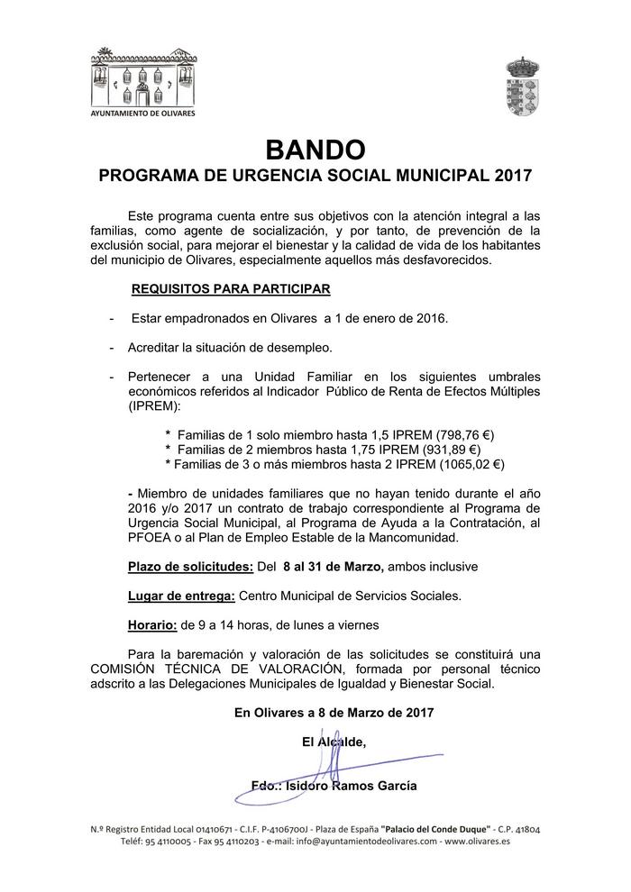 - Estar empadronados en Olivares a 1 de enero de 2016.