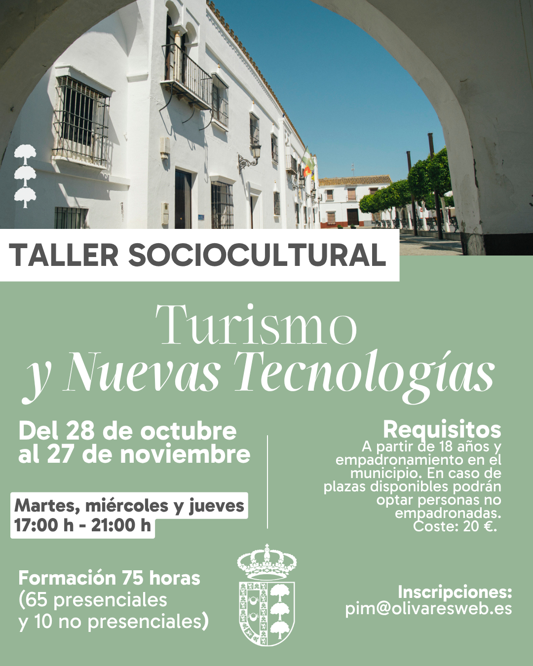 El taller sociocultural ‘Turismo y Nuevas Tecnologías’ se llevará a cabo del 28 de octubre al 27 de noviembre. Durante esta actividad, las personas participantes desarrollarán habilidades digitales y aprenderán a utilizar herramientas para la gestión, promoción y creación de experiencias innovadoras en el ámbito turístico.