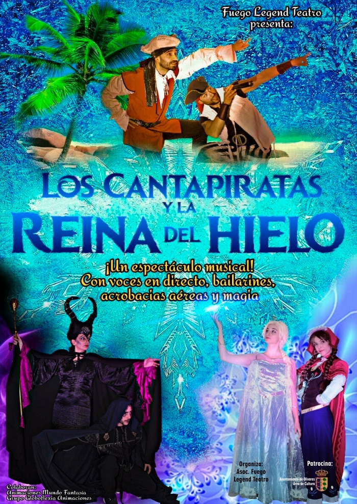 El sábado 11 y domingo 12 de marzo podremos disfrutar en el Teatro Municipal de Olivares del espectáculo musical familiar "Los Cantapiratas y la Reina del Hielo" presentado y organizado por Fuego Legend Teatro y patrocinado por el Área de Cultura del Ayuntamiento de Olivares.