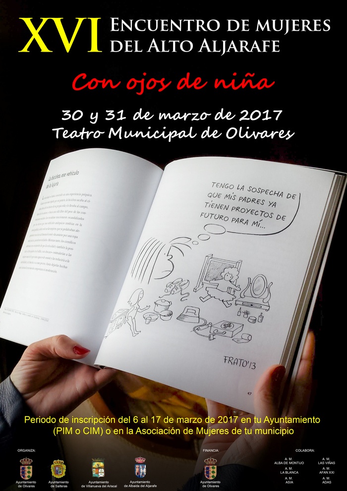 El Punto de Igualdad Municipal del Ayuntamiento de Olivares organiza el XVI Encuentro de Mujeres del Alto Aljarafe los días 30 y 31 de Marzo con la temática: "Con ojos de niña".