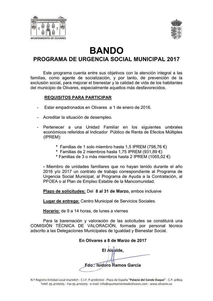 PROGRAMA DE URGENCIA SOCIAL MUNICIPAL 2017