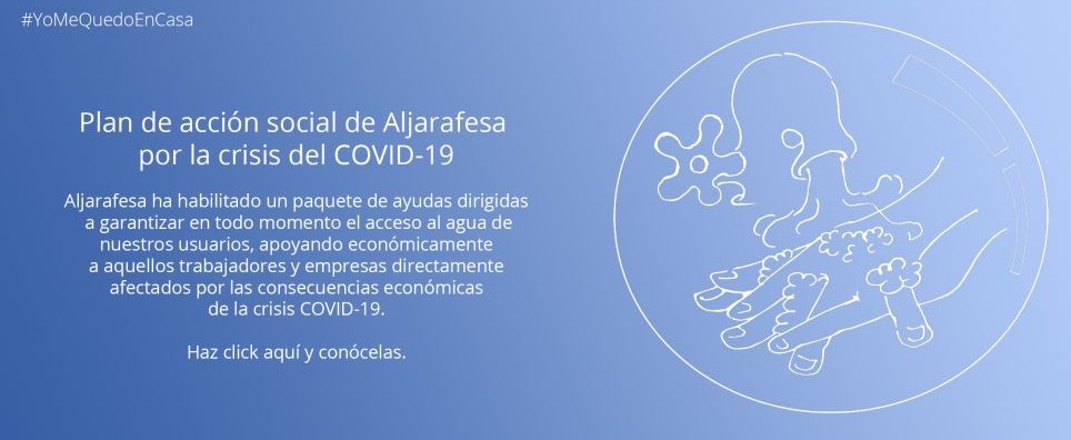 Aljarafesa ha habilitado un paquete de ayudas dirigidas a garantizar en todo momento el acceso al agua de nuestros usuarios, apoyando económicamente a aquellos trabajadores y empresas directamente afectados por las consecuencias económicas de la crisis COVID-19.
