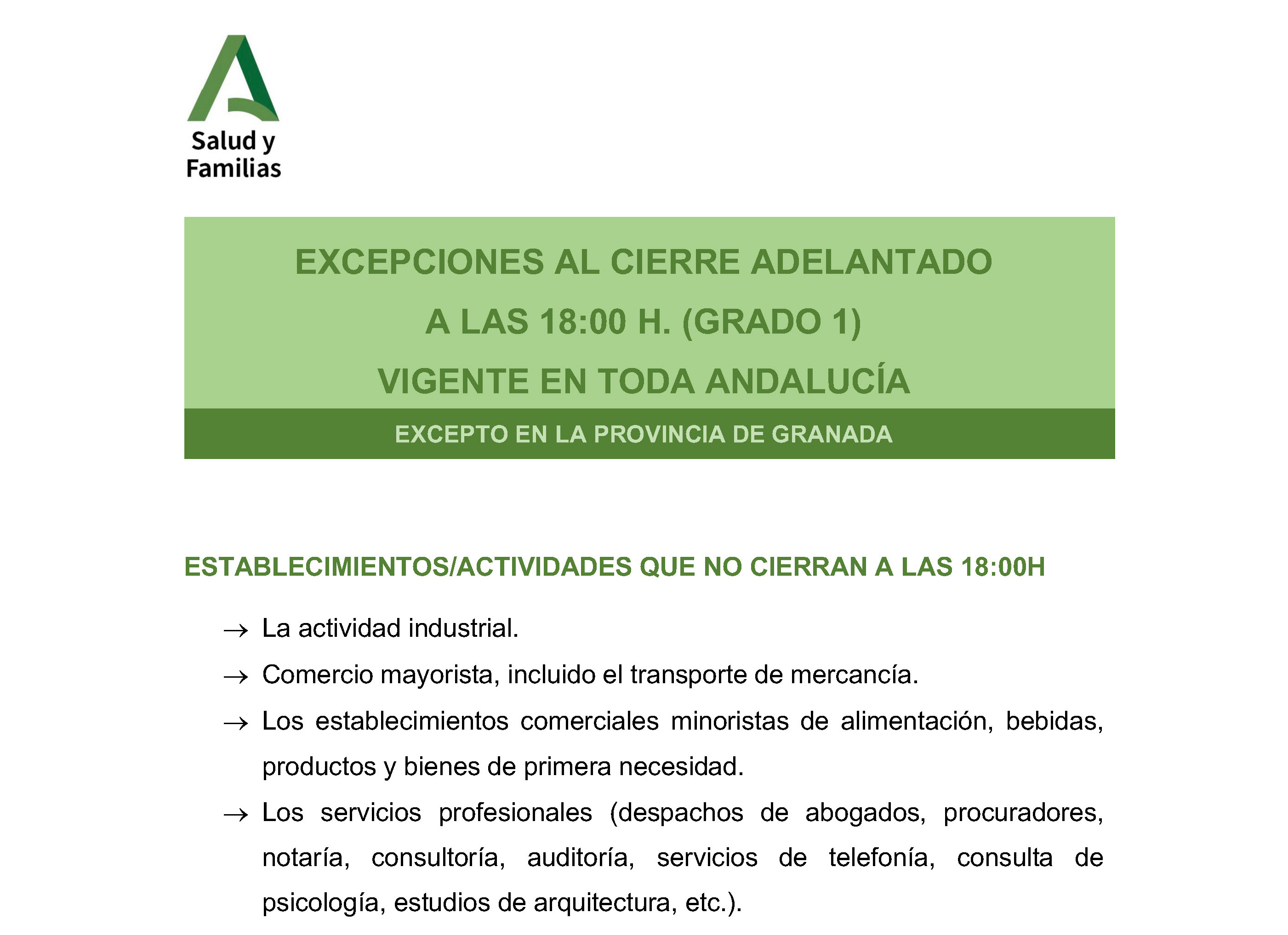 EXCEPCIONES Y NUEVAS MEDIDAS AL CIERRE ADELANTADO A LAS 18 HORAS