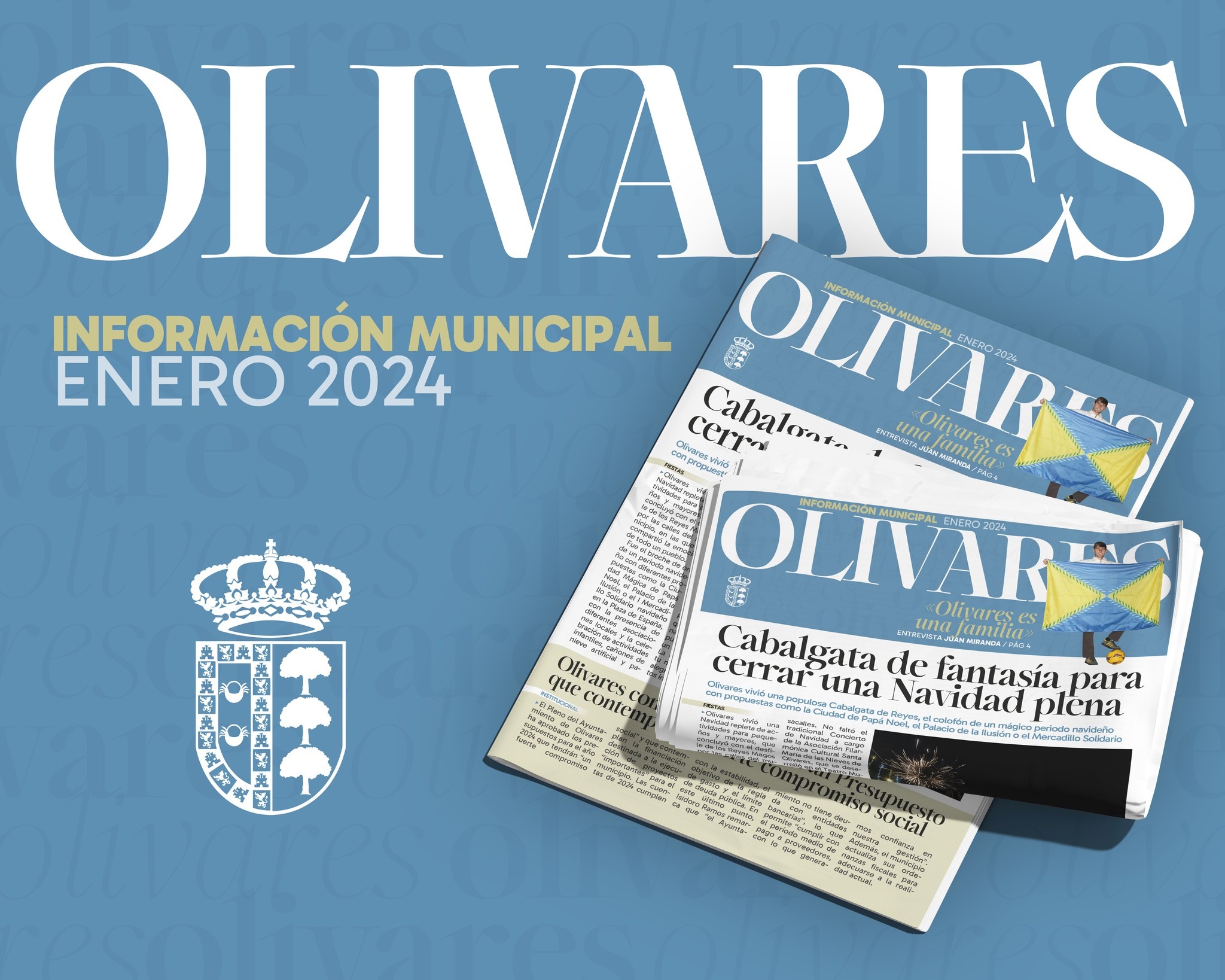 La primera revista contiene un amplio reportaje fotográfico de las fiestas navideñas, una información sobre el Presupuesto municipal de 2024, otras noticias de actualidad y una entrevista al olivarense Juan Miranda