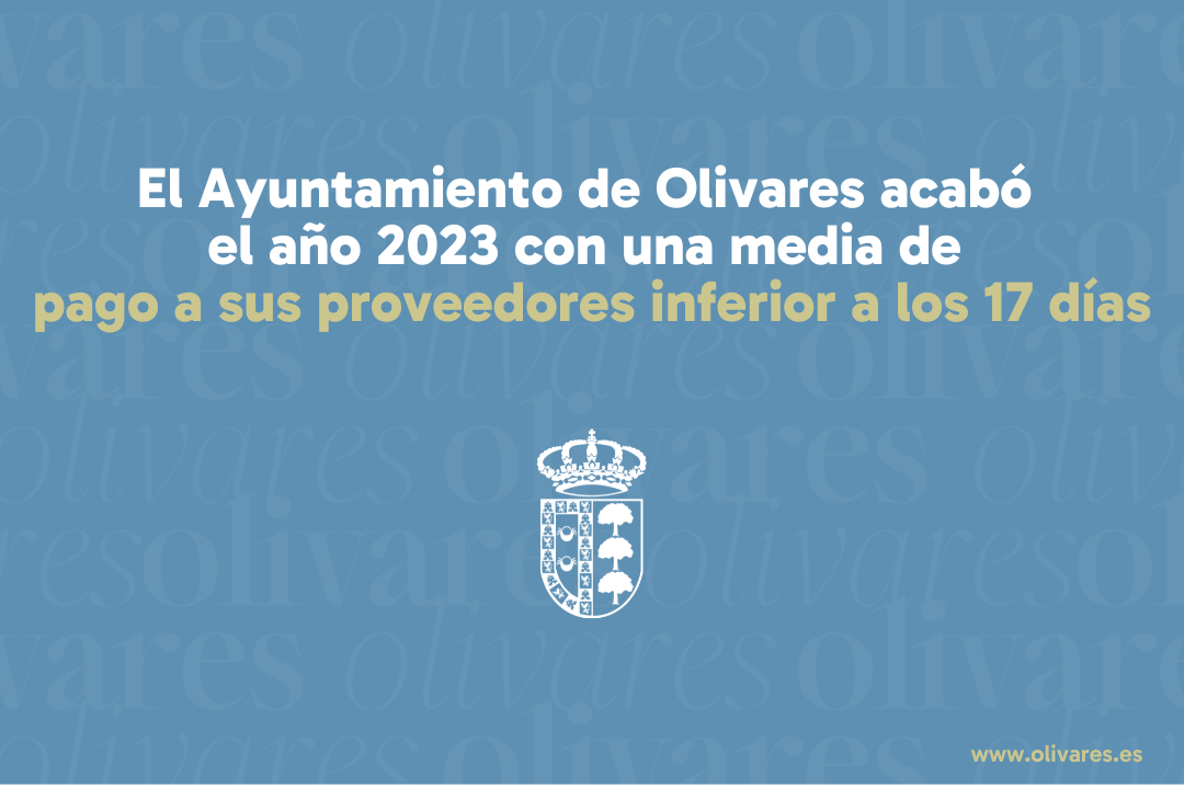El Ayuntamiento de Olivares ha logrado alcanzar una media de 16,39 días en el periodo medio de pago a proveedores durante el cuarto trimestre del año 2023, mejorando en más de 25 puntos la media nacional, que supera los 42 días
