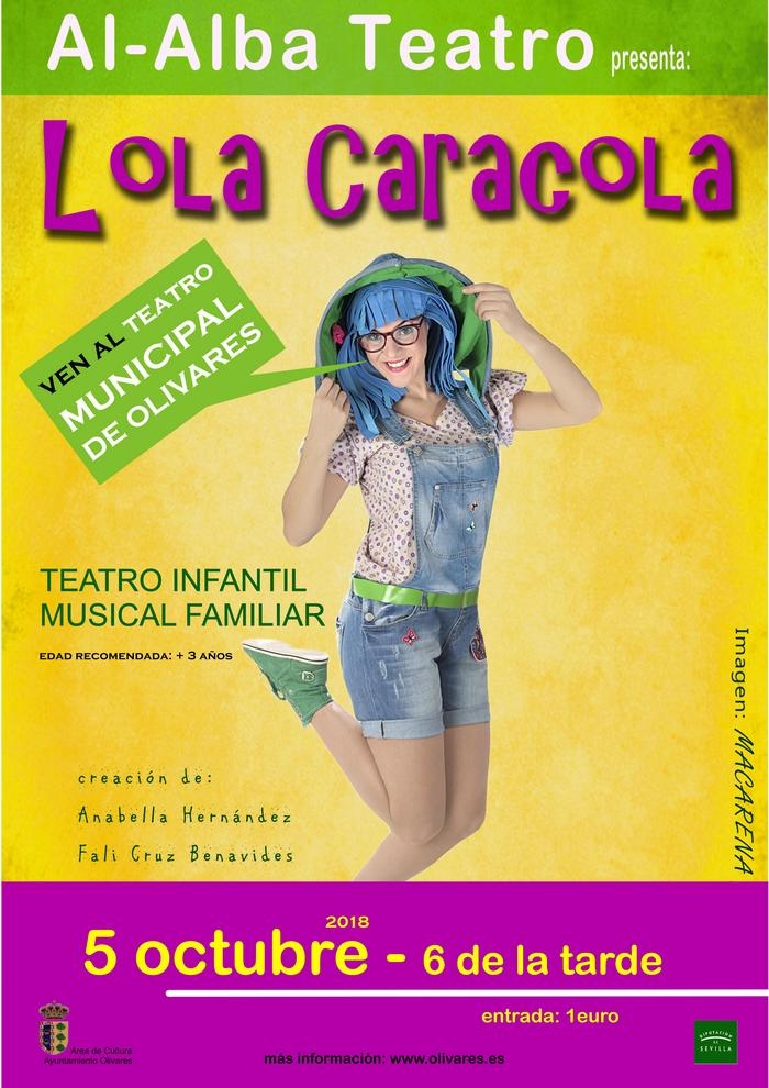 El viernes 5 de octubre Al Alba Teatro representa ?Lola Caracola? a las 6 de la tarde en el Teatro Municipal. Un espectáculo para público familiar; lleno de música, color y diversión que fomenta la igualdad y la diversidad. Entrada: 1 euro.