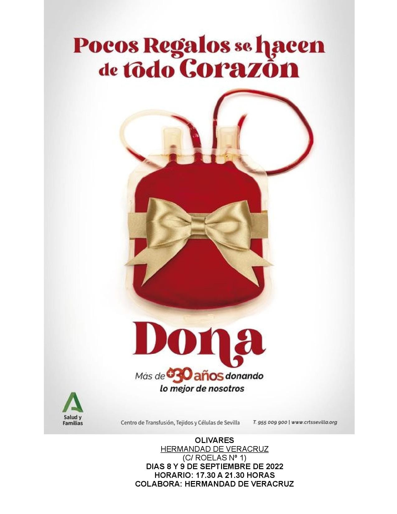 Campaña de Donación de Sangre en Olivares los días 8 y 9 de septiembre de 2022