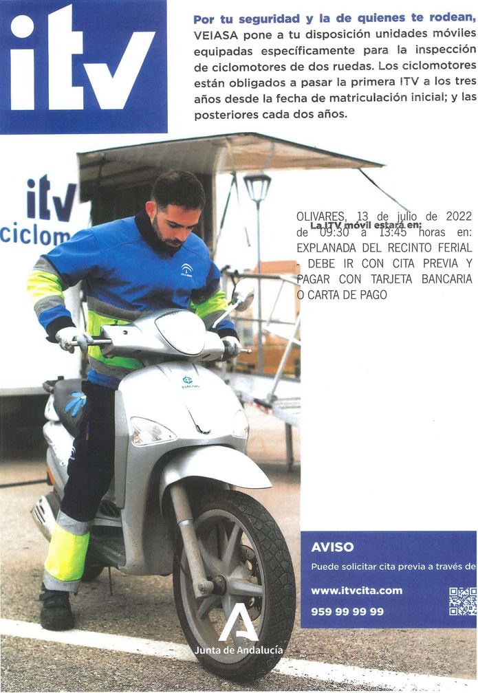 La ITV móvil para ciclomotores se encontrará en Olivares el día 13 de julio de 2022