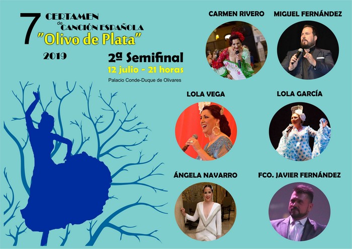 El viernes 12 de julio se celebra la 2ª Semifinal del VII Certamen de Canción Española "Olivo de Plata", en el patio del Palacio del Conde-Duque de Olivares, a las 21:00 horas. Entrada gratuita.