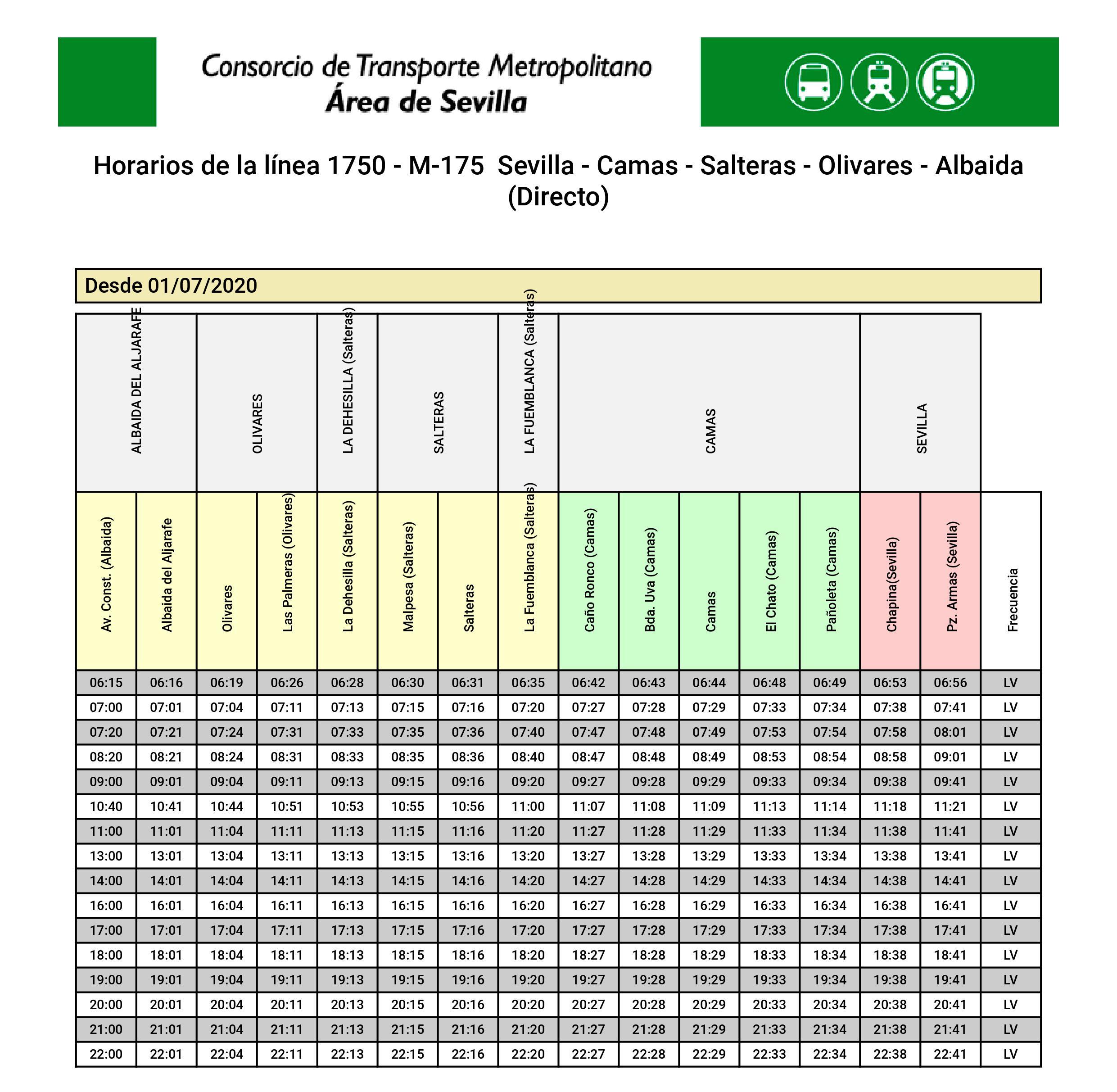 LÍNEA M-175 sentido Sevilla-Albaida del Aljarafe: