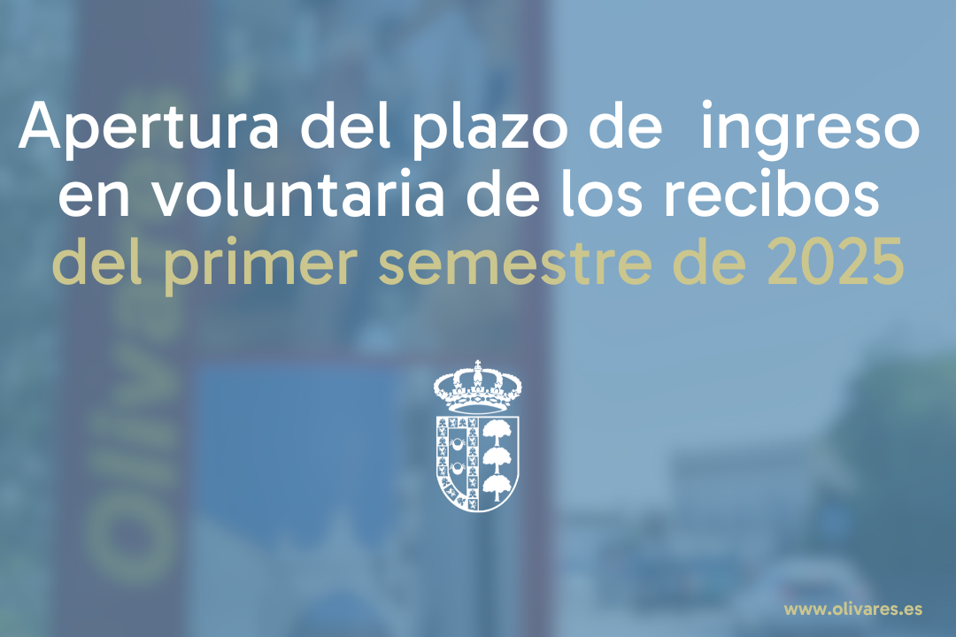 El Ayuntamiento de Olivares anuncia las fechas del período de ingreso en voluntaria de los recibos en este primer semestre del año 2025, que será del 1 de abril al 6 de junio del presente año 2025, ambos días inclusive.