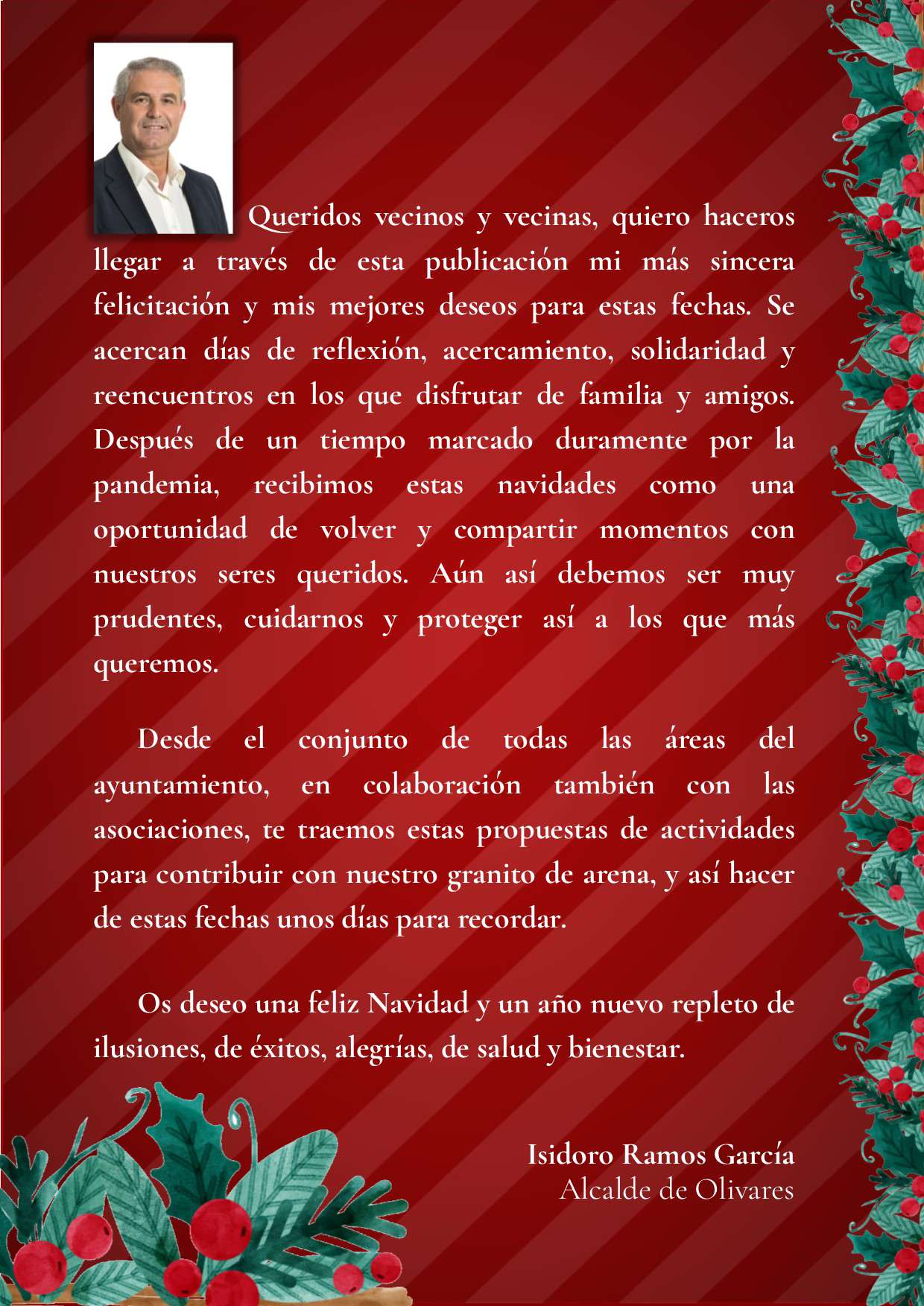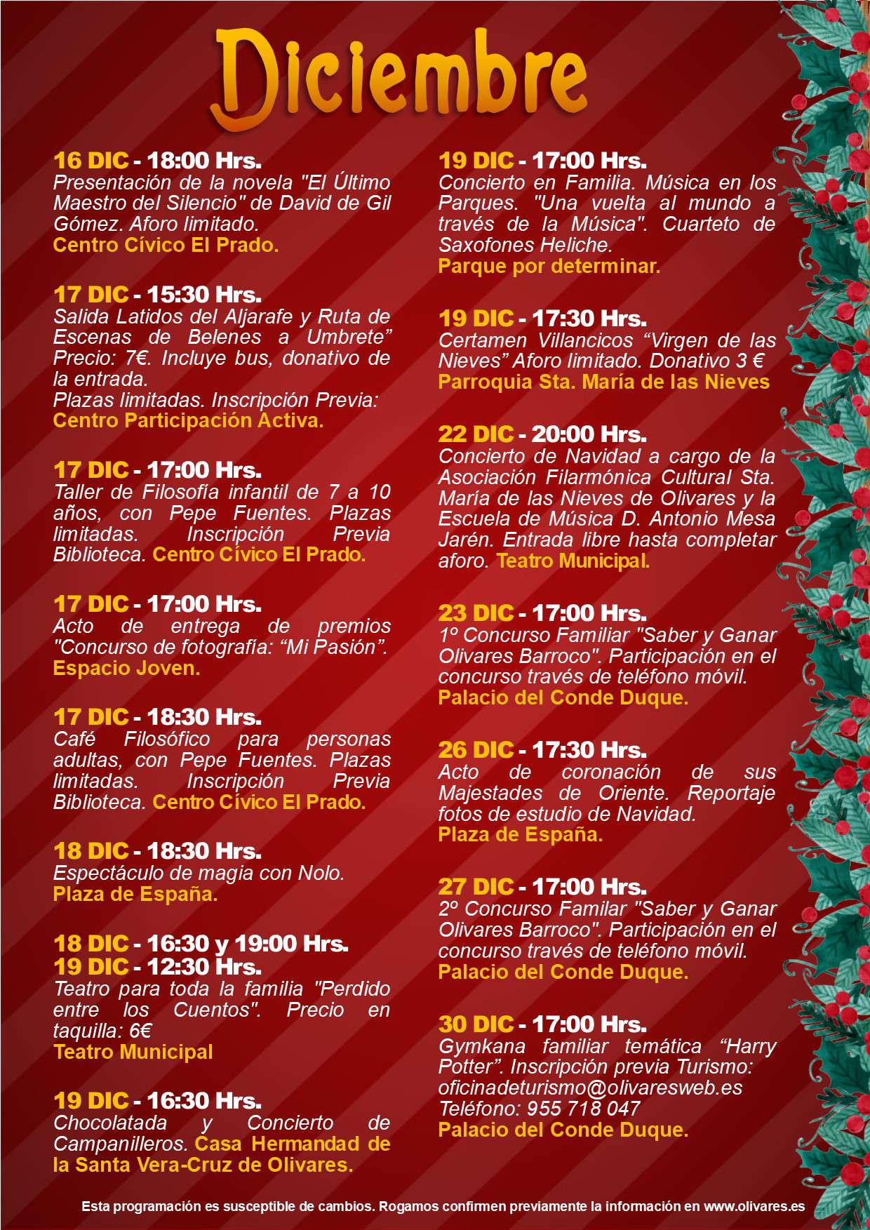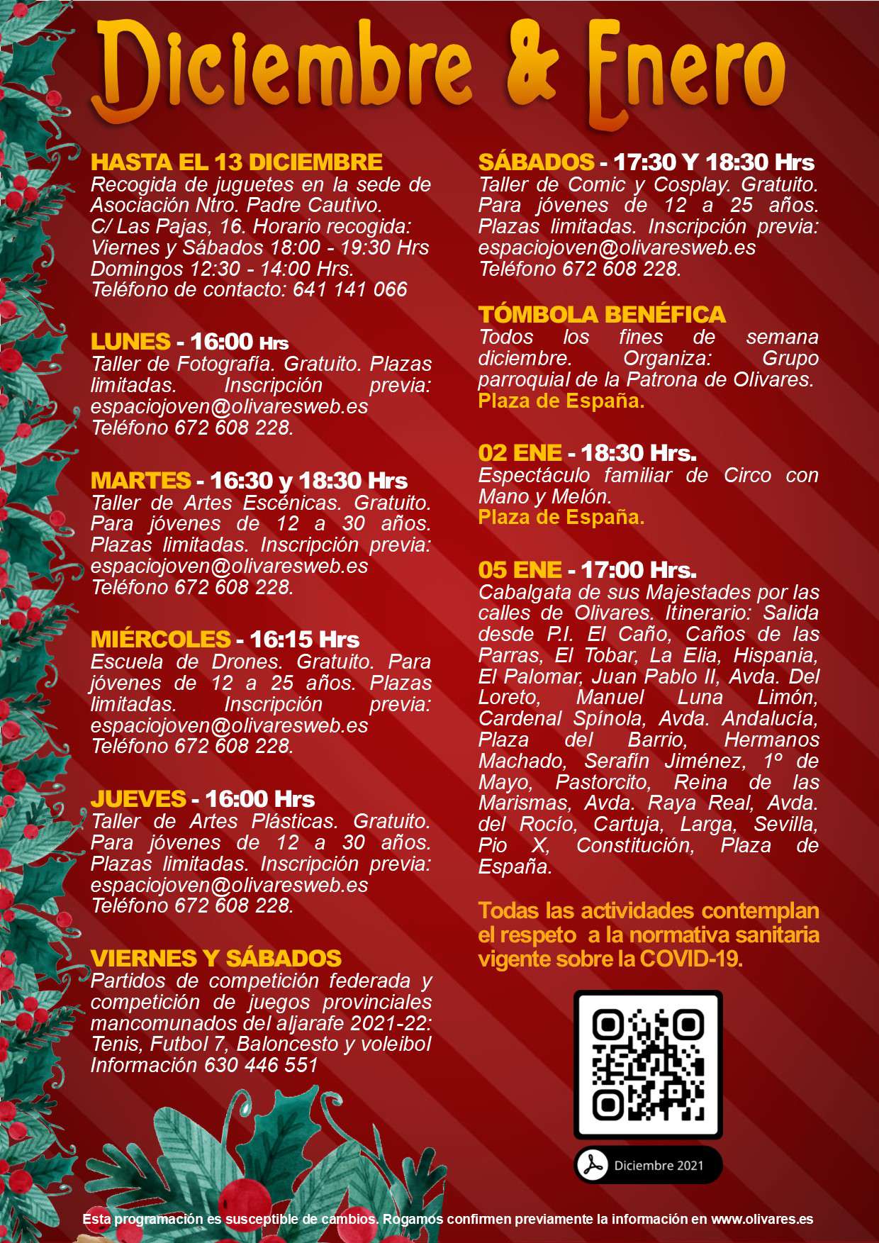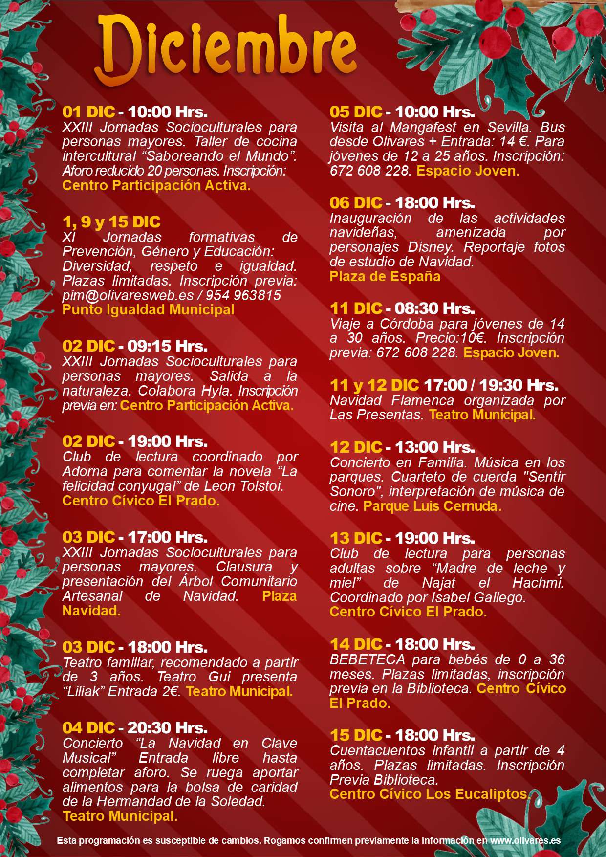 Actividades programadas por las diferentes áreas municipales para el mes de diciembre de 2021.