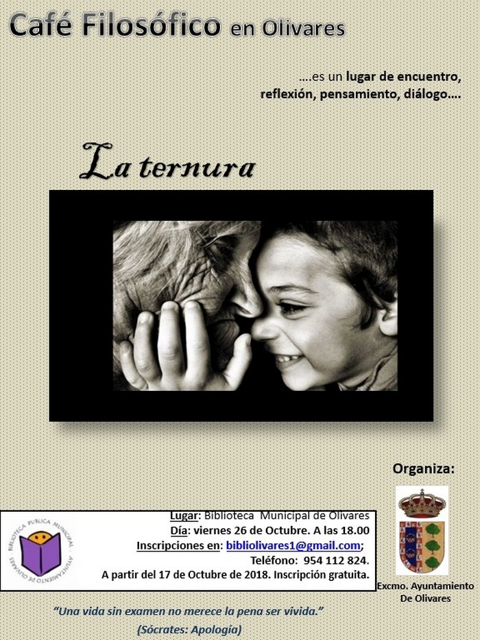 El viernes 26 de octubre, a las 18:00h. celebramos el comienzo de la nueva temporada del Café Filosófico de la Biblioteca Pública de Olivares. ¡Os esperamos!, Inscripción previa.