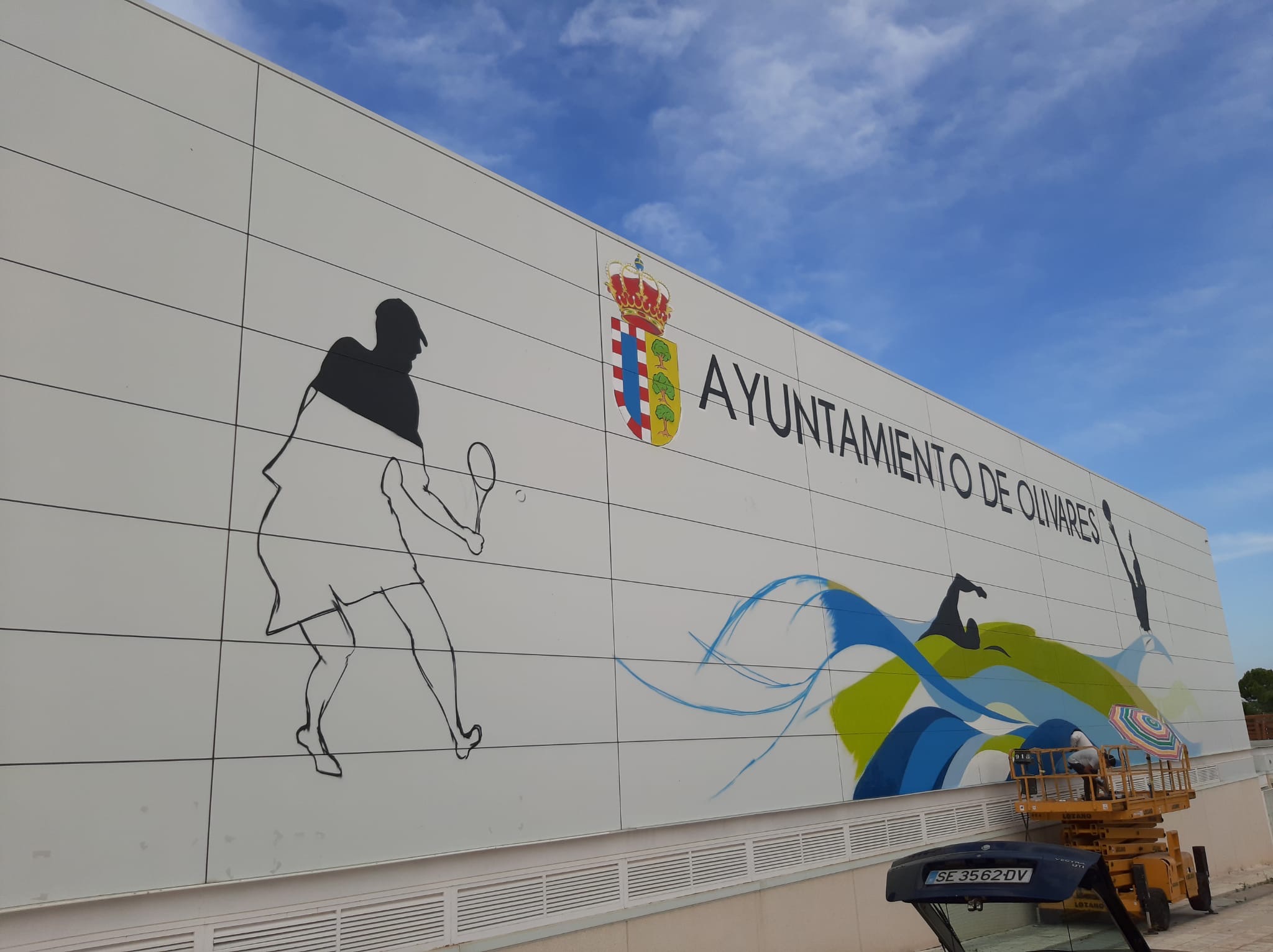 Tras estos meses de suspensión de la práctica totalidad de las actividades sociales, deportivas, administrativas, etc., el Ayuntamiento de Olivares ha adjudicado el contrato de pintura mural del Pabellón Municipal de Deportes, que servirá de soporte del nuevo nombre con que figurará todo el Complejo Polideportivo municipal.