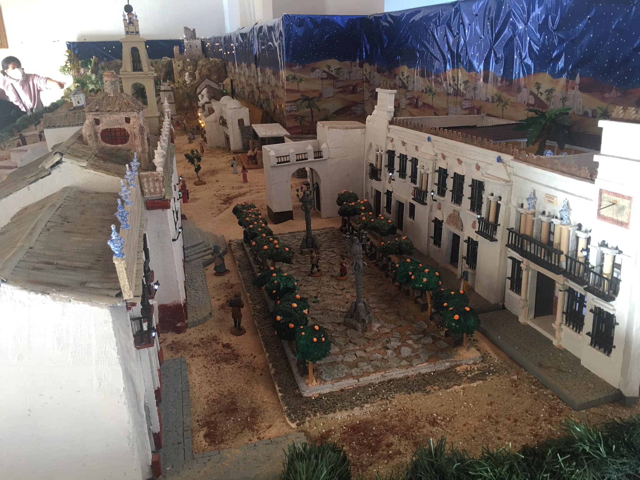 El Belén ha sido elaborado por el vecino Manuel J. Molina Gómez, y contiene elementos y lugares emblemáticos de Olivares