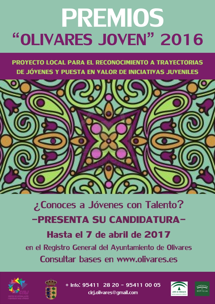 Este próximo jueves 25 de mayo a las 19 horas, tendrá lugar en el Teatro Municipal de Olivares la entrega de Premios "Olivares Joven 2016" con el que se pretende reconocer y poner en valor la trayectoria de jóvenes Olivareños/as, destacando su trabajo y esfuerzo.
