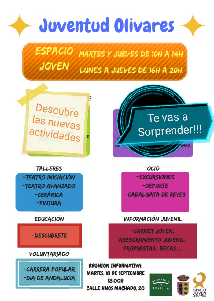 Un año más, desde el área de Juventud del Ayuntamiento de Olivares queremos seguir ampliando nuestras actividades dirigidas a los jóvenes y apostando por su formación y ocio.