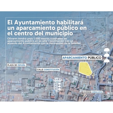 El Ayuntamiento de Olivares habilitará la parcela ubicada en la calle Constitución número 13 en un aparcamiento público, después de haber llegado a un acuerdo con la Hermandad de la Soledad, propietaria de estos terrenos. Según el alcalde Isidoro Ramos, se trata de una “demanda histórica que ha logrado este Equipo de Gobierno, que da respuesta a una petición que nos han solicitado los vecinos y vecinas de Olivares por la escasas zonas de aparcamiento que tiene el municipio en esta parte del casco urbano”.