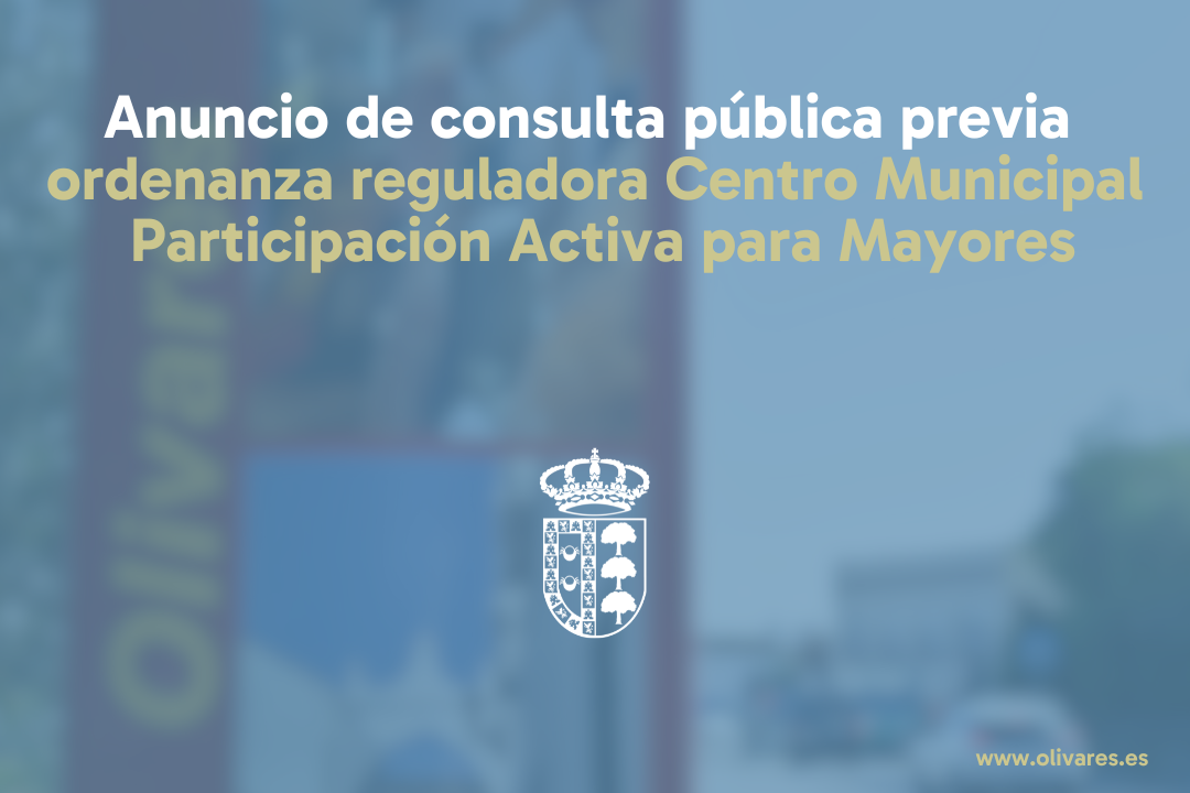 El Ayuntamiento de Olivares inicia el procedimiento para someter a consulta pública previa la futura Ordenanza Reguladora del Centro Municipal de Participación Activa para Mayores, tal y como se aprobó en la Junta de Gobierno del pasado 5 de diciembre de 2025.