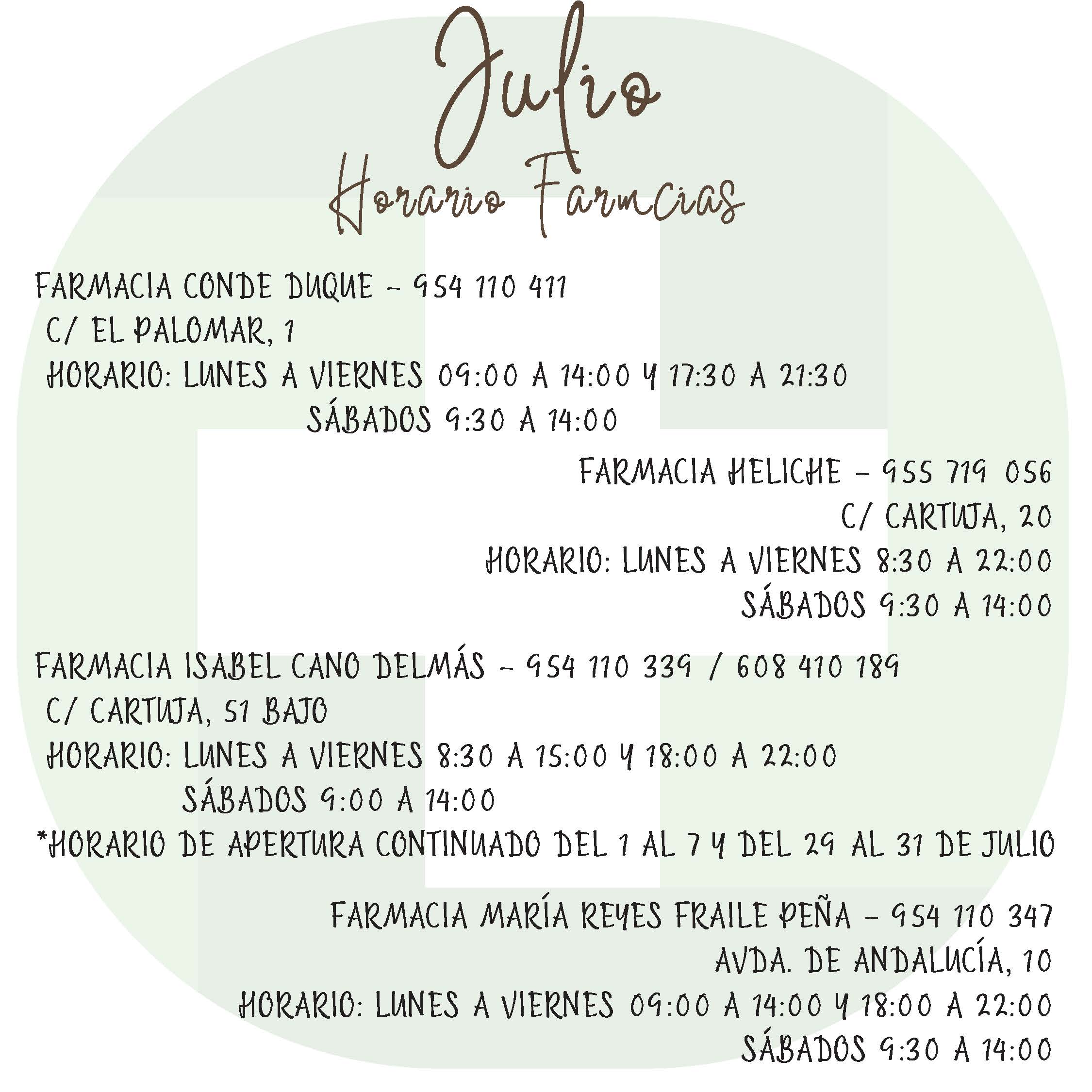Estos son los horarios de las Fármacias de Guardia de Olivares de este mes de Julio.