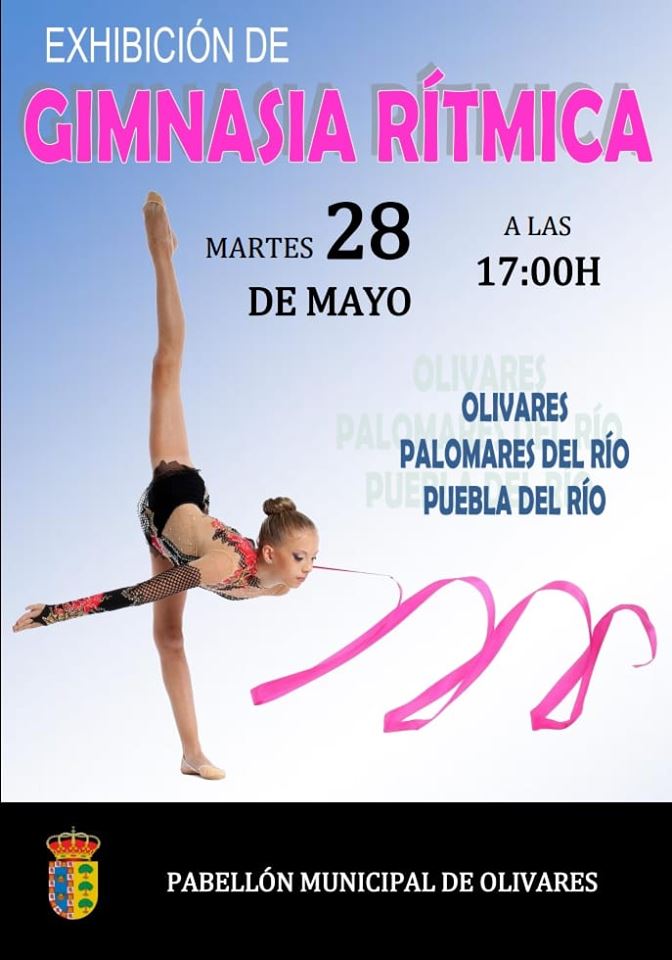 El próximo martes 28 de Mayo tendrá lugar la I Exhibición de Gimnasia Rítmica de clausura de la temporada 2018/2019. Participan todas las niñas de la Escuela Municipal de Olivares, junto a las escuelas de Palomares y Puebla del Río, que serán nuestras invitadas en esta maravillosa jornada.
