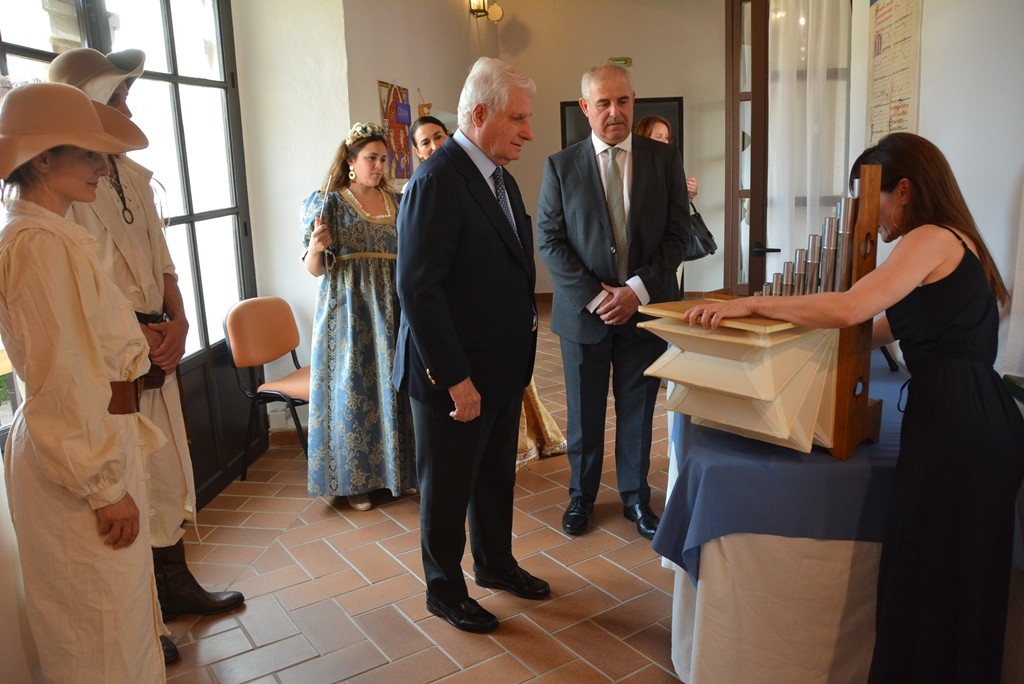 Seguidamente, la comitiva municipal acompañó a D. Carlos por las dependencias del Palacio, hoy sede del consistorio, disfrutando de las exposiciones que se desarrollan durante la celebración: acuarelas, dioramas con representaciones de los tercios españoles, réplicas de instrumentos musicales de época barroca y micro conciertos con una programación que recoge la historia del Siglo de Oro.