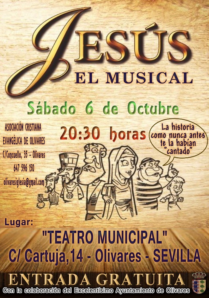 El próximo sábado 6 de octubre, a las 20:30 horas, en el Teatro Municipal de Olivares y organizado por la Asociación Cristiana Evangélica de Olivares, se representará "Jesús el Musical". La entrada es gratuita.