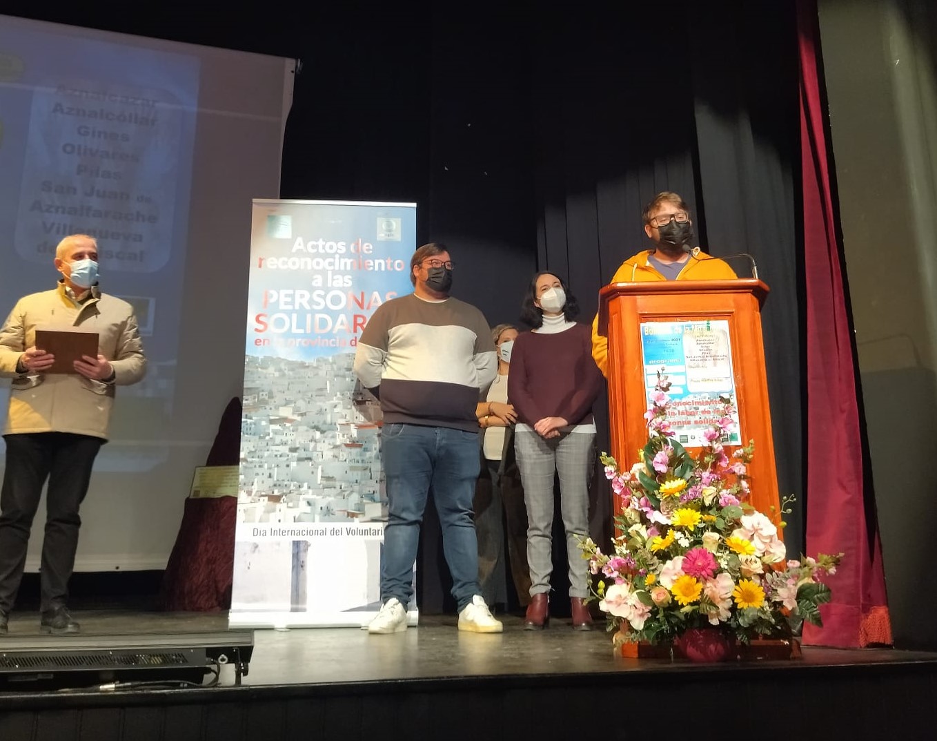 La pasada semana tuvo lugar el acto anual de Reconocimiento a las personas solidarias, en la conmemoración del Día Internacional del Voluntariado, organizado por la Diputación Provincial de Sevilla y la ONG Imaginas, y al que asistió el Alcalde de Olivares, Isidoro Ramos, la Delegada Municipal de Participación Ciudadana, Mª Carmen Mateos, y dos representantes de la Asociación “Nuestro Padre Jesús Cautivo y Rescatado”.
