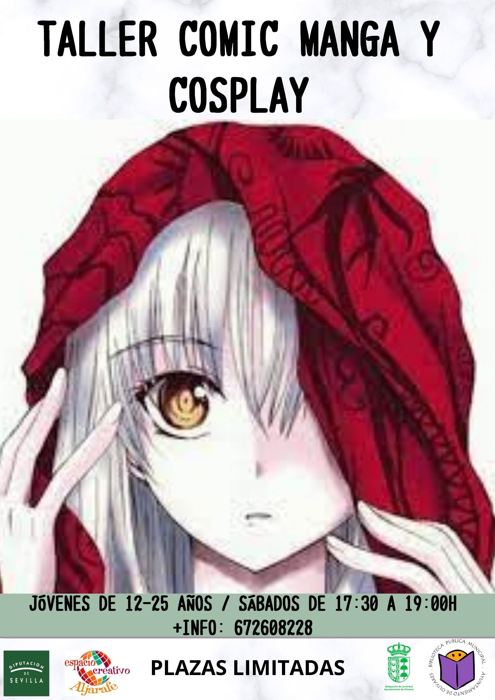 La Delegación de Juventud del Ayuntamiento de Olivares continúa con la programación del nuevo curso que ya ha comenzado. En las redes sociales se publican todas ellas, siendo en esta ocasión el turno de una nueva actividad novedosa y demanda por los/as jóvenes. Se trata de un “Taller de Manga y Confección de Cosplay”.