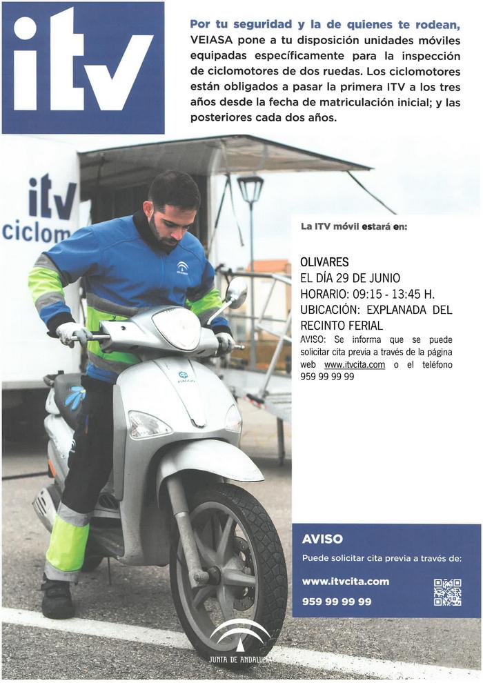 LA ITV MÓVIL SE ENCONTRARÁ EN OLIVARES LOS DÍAS 27, 28 Y 29 DE JUNIO DE 2017