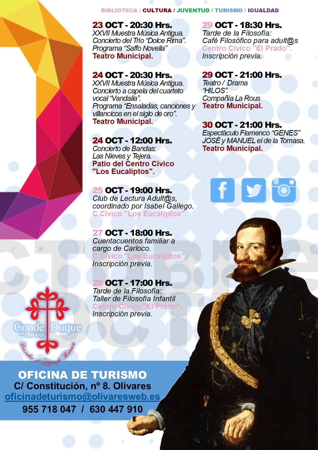 Olivares cuenta con una amplia programación cultural. Para ello, se ha desarrollado además un boletín informativo con todas las actividades que se desarrollarán a lo largo del mes de octubre.