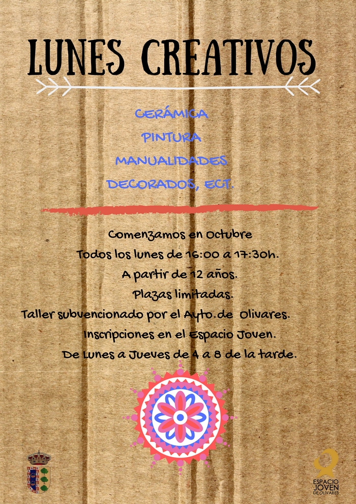 Desde el área de Juventud se pone en marcha un nuevo taller subvencionado por el Ayuntamiento de Olivares para la población juvenil más creativa. Si tienes más de 12 años y te gustan las artes plásticas, la cerámica, pintura y todo el mundo artesanal puedes participar en este taller a partir del mes de octubre.