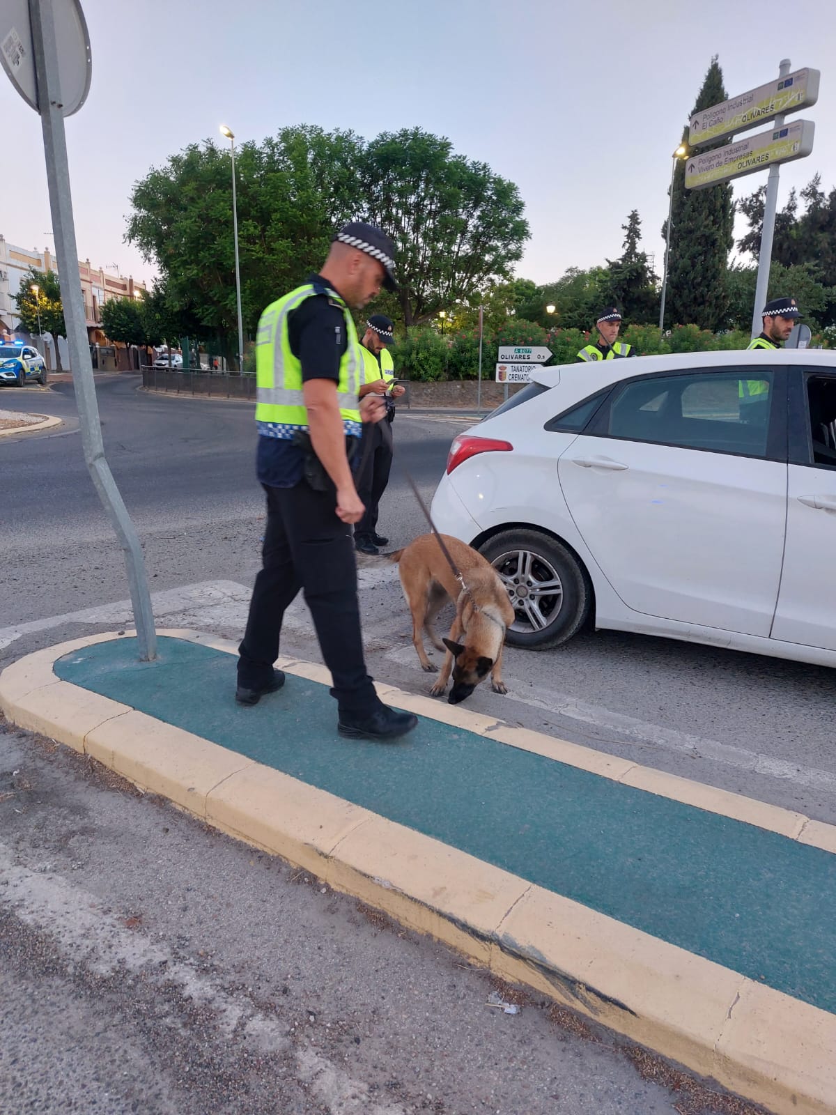 Los controles se realizan con carácter periódico en diversas vías urbanas de Olivares para controlar y prevenir la tenencia y consumo de sustancias estupefacientes, con la participación de la Unidad Canina.