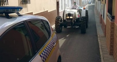 El Ayuntamiento de Olivares ha organizado nuevamente el dispositivo de una nueva desinfección de las calles del municipio, con la colaboración de varios tractoristas del pueblo, que se brindan para realizar dichos trabajos.