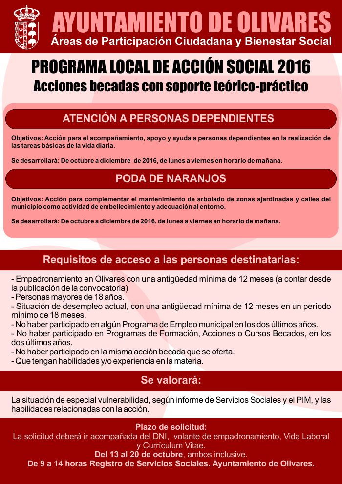 El Ayuntamiento de Olivares oferta dos nuevas acciones becadas que se desarrollarán durante los