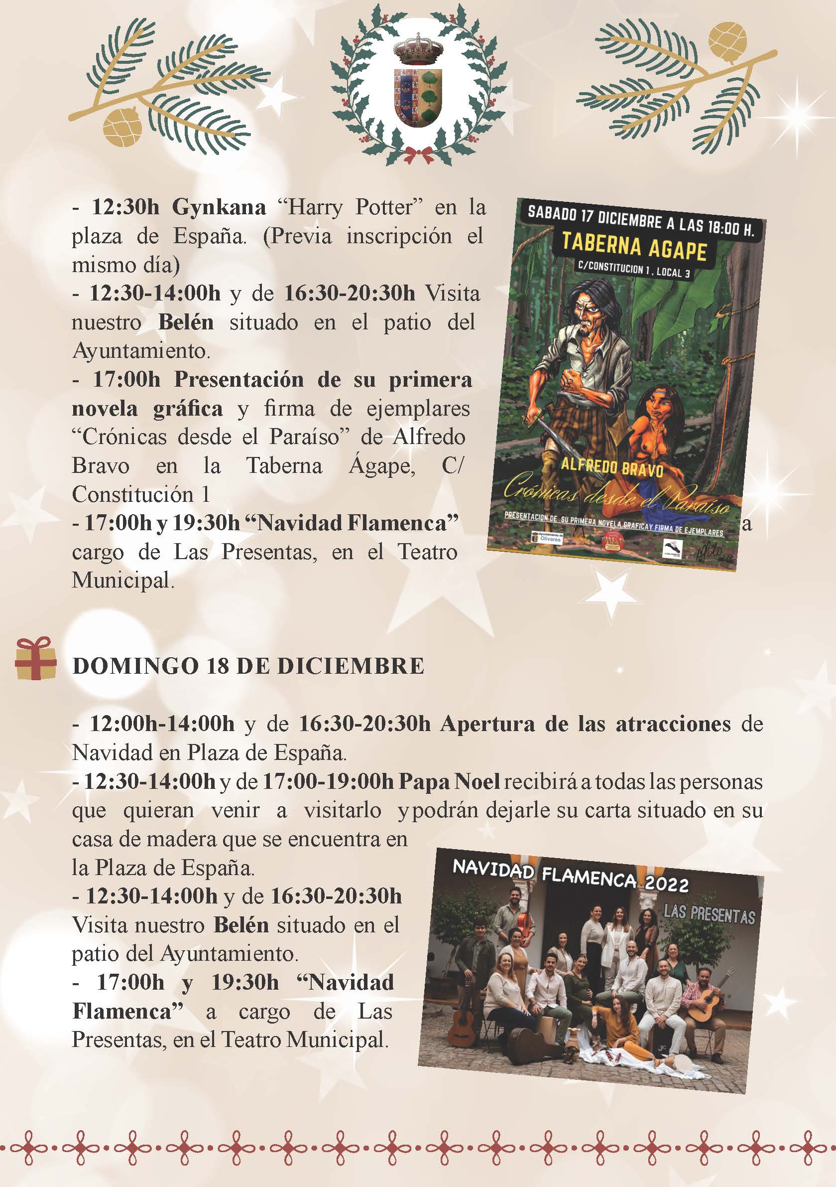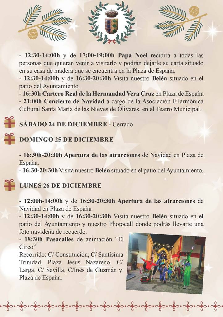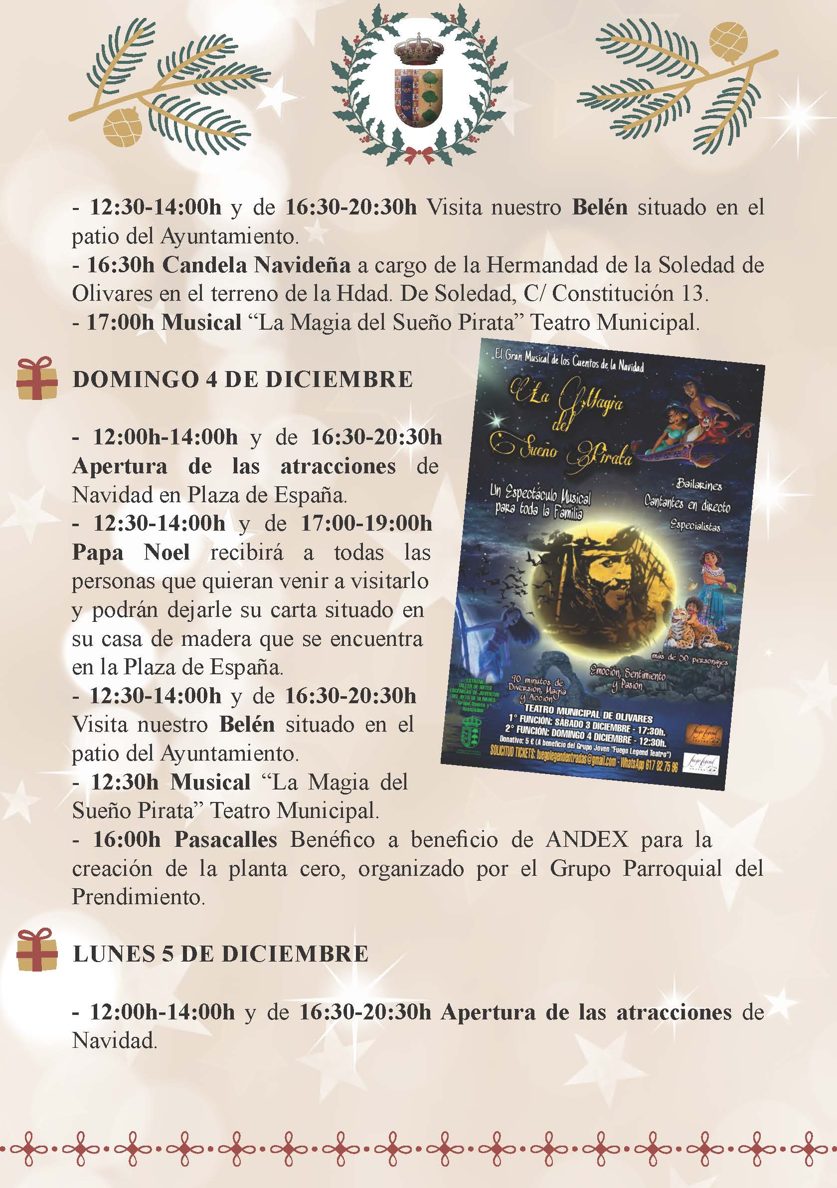 La delegación de Festejos del Ayuntamiento de Olivares lanza la programación que se desarrollará desde el viernes 2 de diciembre de 2022 al jueves 5 de enero de 2023 con motivo de la Navidad. Un amplio abanico de actividades para todos los público que en esta edición cuenta con algunas novedades.