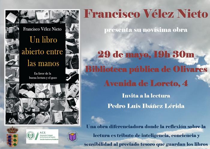 La presentación tendrá lugar el próximo 29 de mayo a las 19:30 horas en la Biblioteca Municipal de Olivares, Avenida de Loreto, 4. Acompañará a Francisco Vélez Nieto e invitará a la lectura de la obra Pedro Luis Ibáñez Lérida.