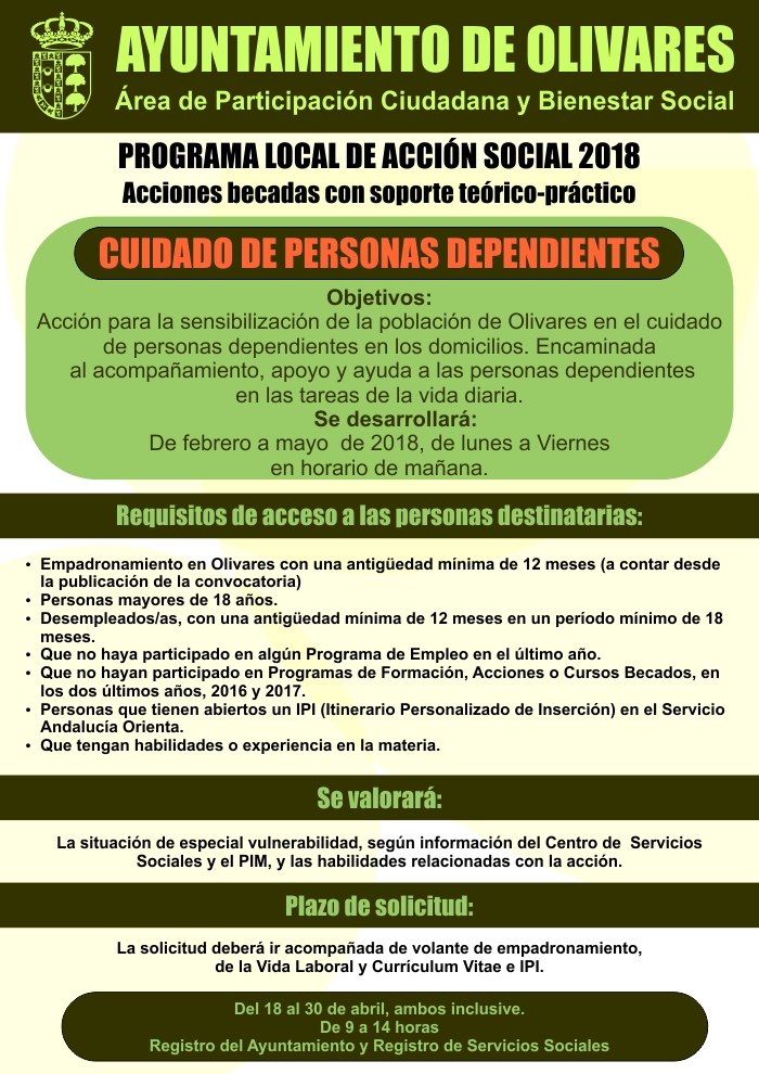 PROGRAMA LOCAL DE ACCIÓN SOCIAL 2018: CUIDADO DE PERSONAS DEPENDIENTES
